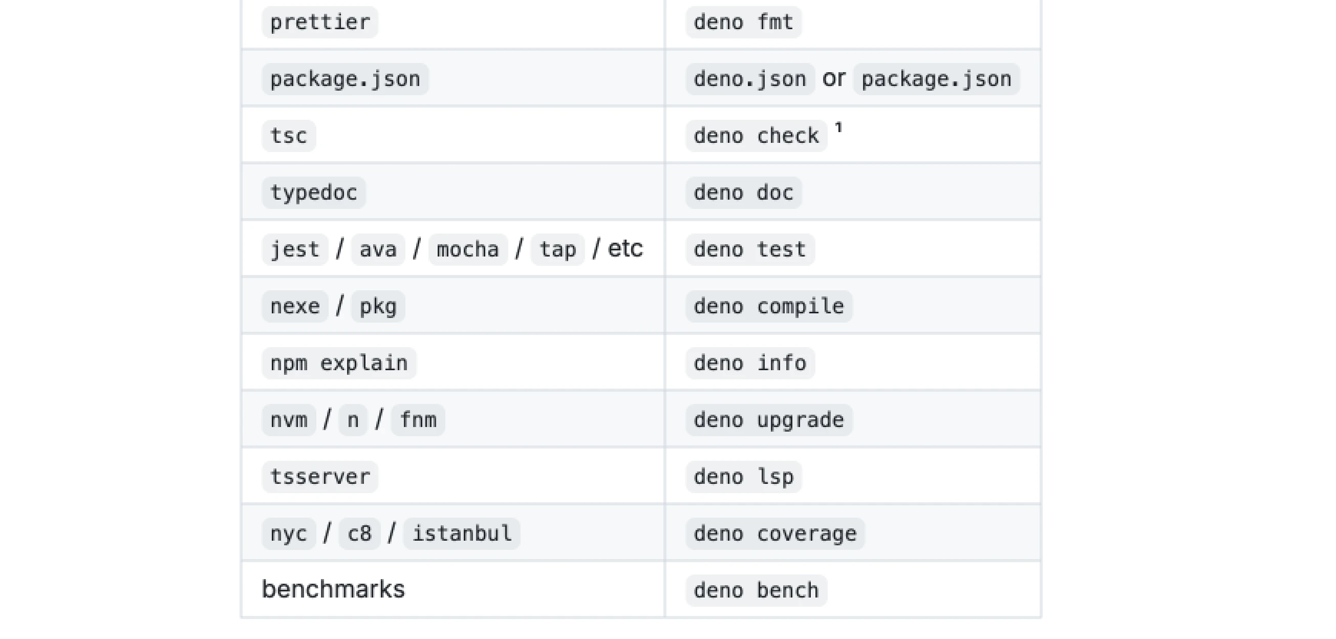 여담으로 비교적 현대적인 언어인 Go와 Rust는 이러한 툴체인이 상당히 편리하다. 그리고 Deno 개발 멤버들의 SNS와 컨퍼런스에서의 언급을 미루어볼 때 실제로 두 언어의 영향을 받았을 것이라 짐작해 볼 수 있다.