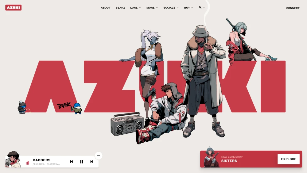 유려한 홈페이지가 인상 깊은 아즈키 프로젝트의 홈페이지. 이더리움 NFT 역사에 한 획을 그었으며 희귀도가 높은 NFT는 한때 10억 원을 자랑했다.