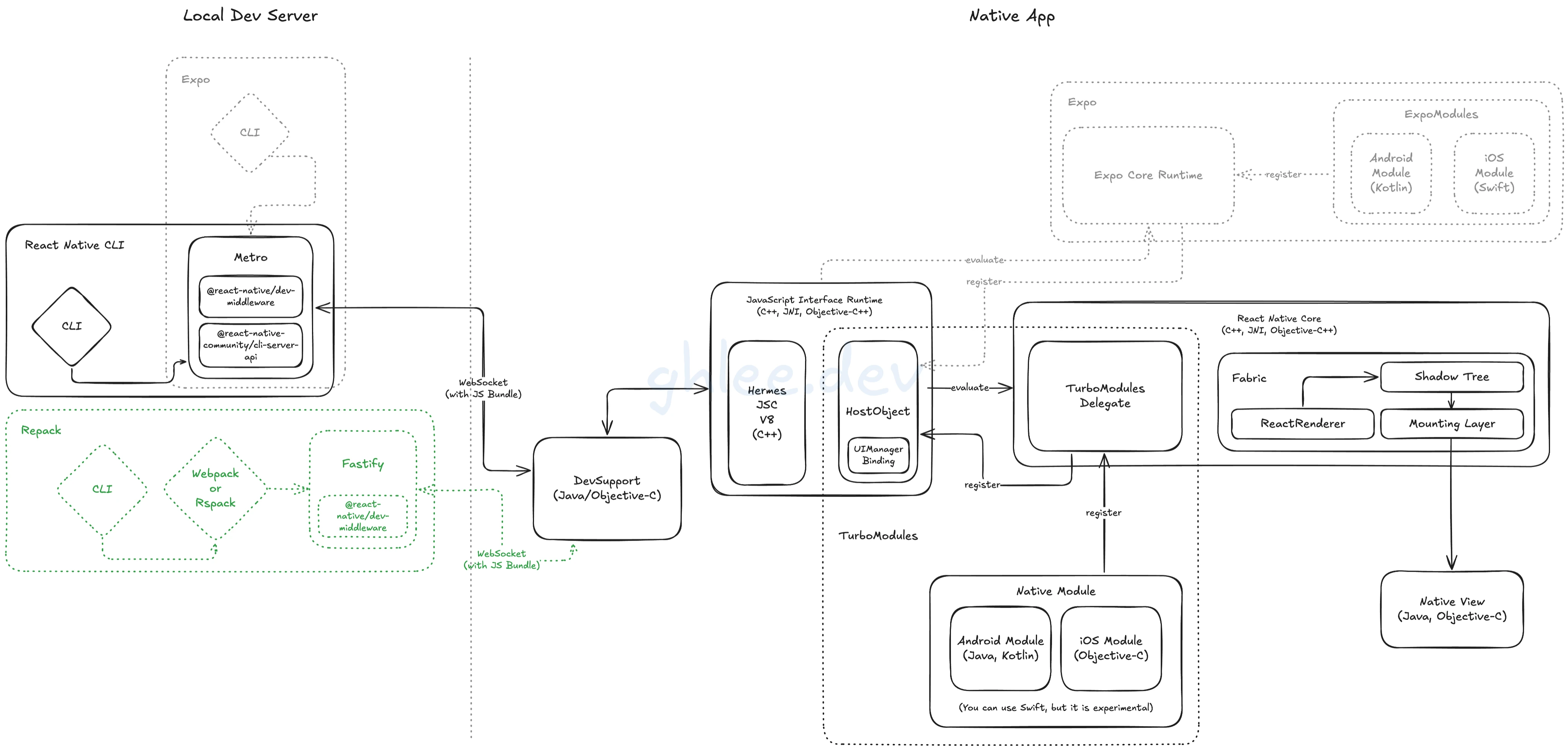 2025. 6. 17.그동안 가볍게만 접해왔던 React Native 사용을 본격적으로 시작했고, 다양한 관점에서 인사이트를 얻고자 지인 개발자와 함께 세미나를 진행 중이다. 세미나 과정에서 ‘라이브러리와 API 활용법’ 같은 고수준의 주제부터 아키텍처 같은 저수준의 주제까지, React Native에 대한 다양한 이야기가 오갔다. 이 글은 세미나에서 논의된 내용을 정리 없이 가볍게 작성한 글이다.