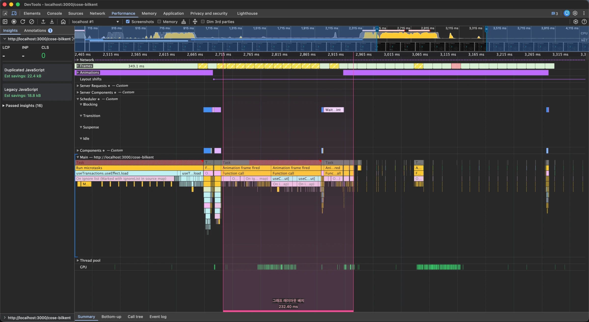 레이아웃 배치 시간이 0.23초로 메인 스레드 병목이 상당히 줄어든 것을 확인할 수 있다.