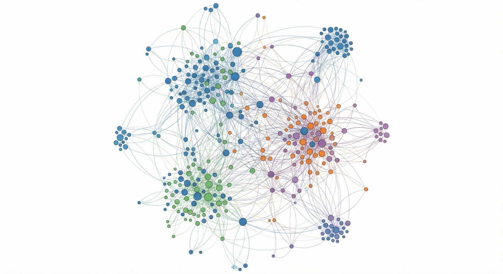 Force-directed 계열의 레이아웃은 노드(Node)와 엣지(Edge)를 이용해 그래프를 정리해 보여주는 방식이다. 노드들은 겹치지 않도록 퍼지려 하고, 엣지를 통해 연결된 노드들은 서로 가까이 유지되려 하면서, 전체 구조가 한눈에 이해되도록 배치된다.